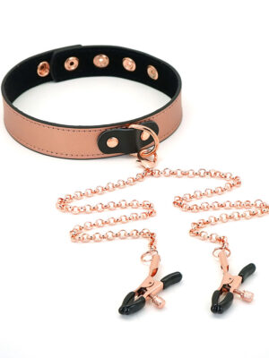 Rose Gold Memory - Leather Collar with Nipple Clamps