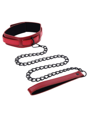 Deluxe Curved Collar with Chain Leash & Lock – Black