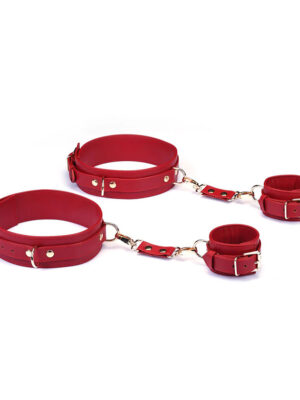 Wrist to Thigh Cuffs Kit - Red Faux Leather