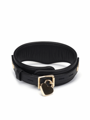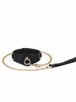 Deluxe Curved Collar with Chain Leash & Lock - Black