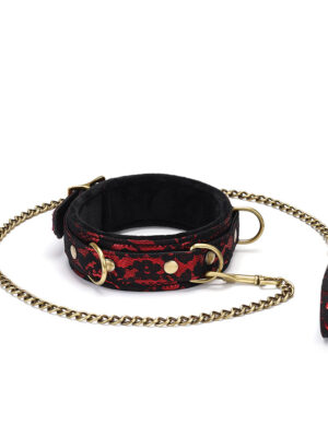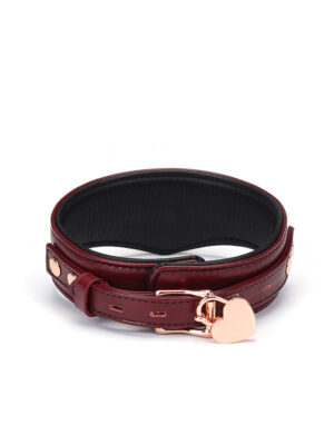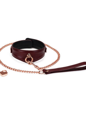 Deluxe Curved Collar with Chain Leash & Lock - Wine Red