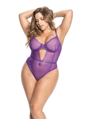 Underwire Sheer Mesh Teddy w/Adjustable Straps & Crotch Closure Orchid 2X/3X