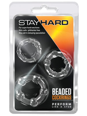 Blush Stay Hard Beaded Cock Rings 3 Pack - Clear
