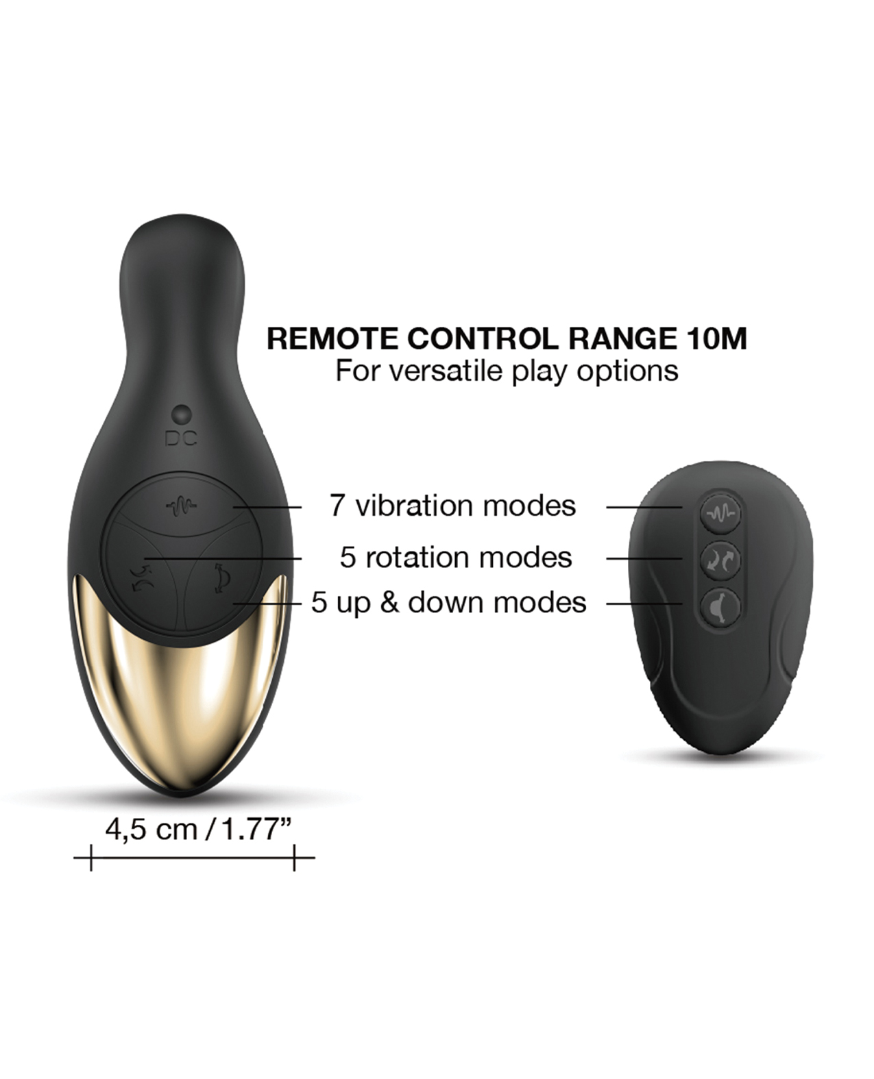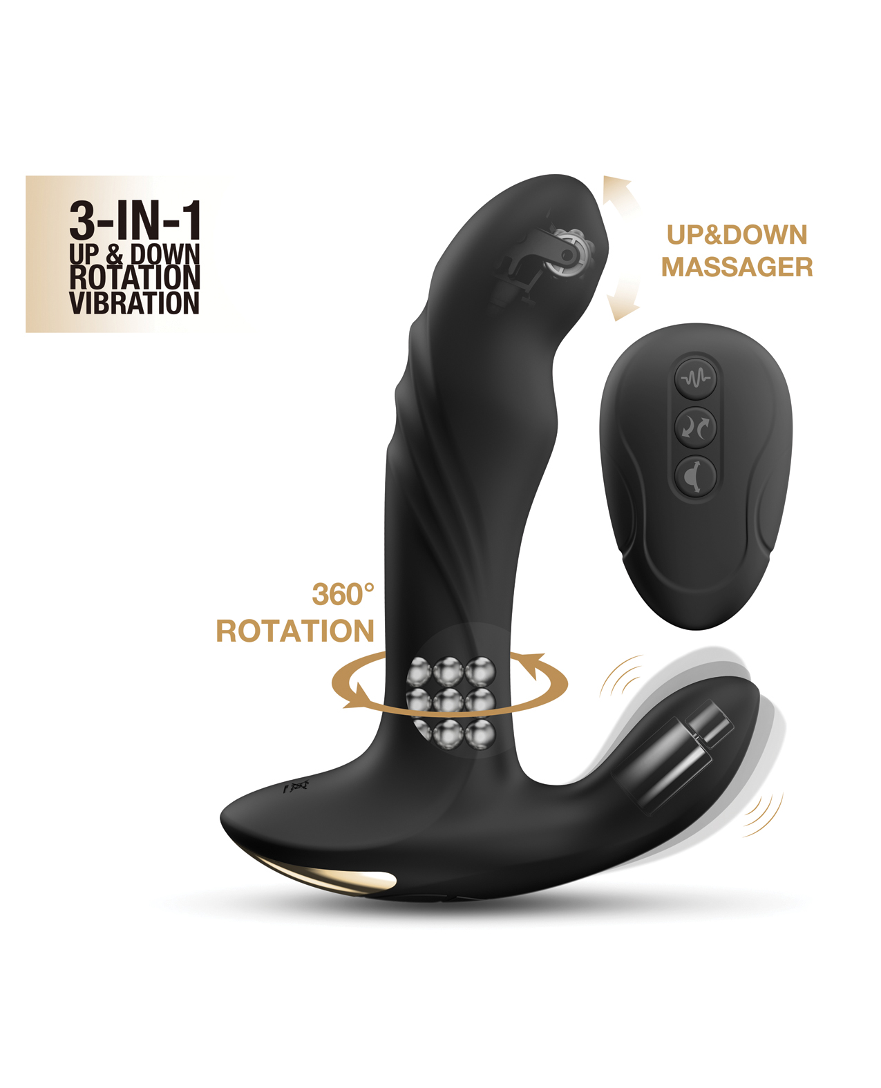 Navigate among its 7 vibrations, 5 up & down movements, 5 rotations with the wireless remote control, and explore the prostate pleasure until orgasm!