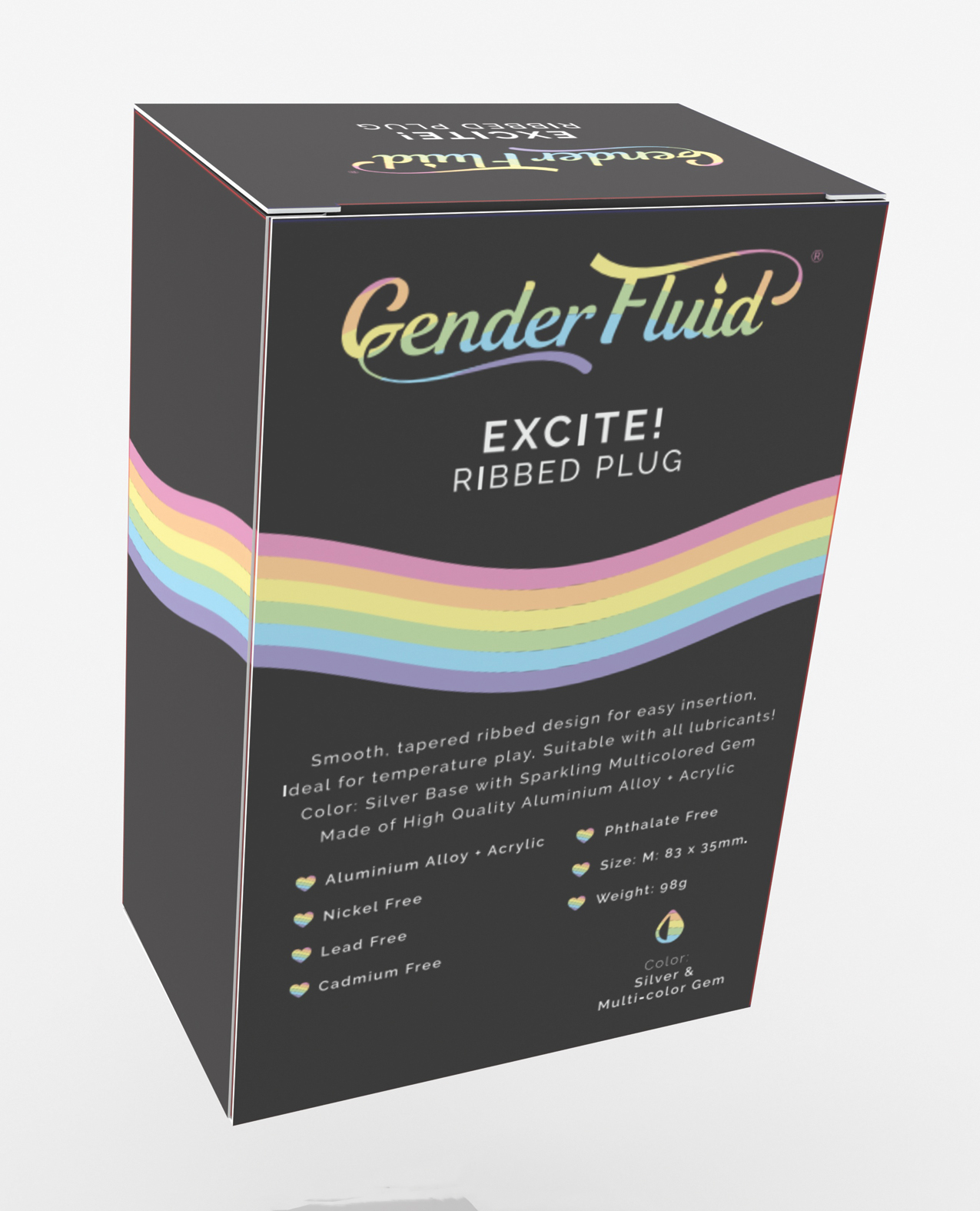 Excite! Plug. From Gender Fluid. Smooth, tapered ribbed design for easy insertion.. Ideal for temperature play. Suitable with all lubricants.