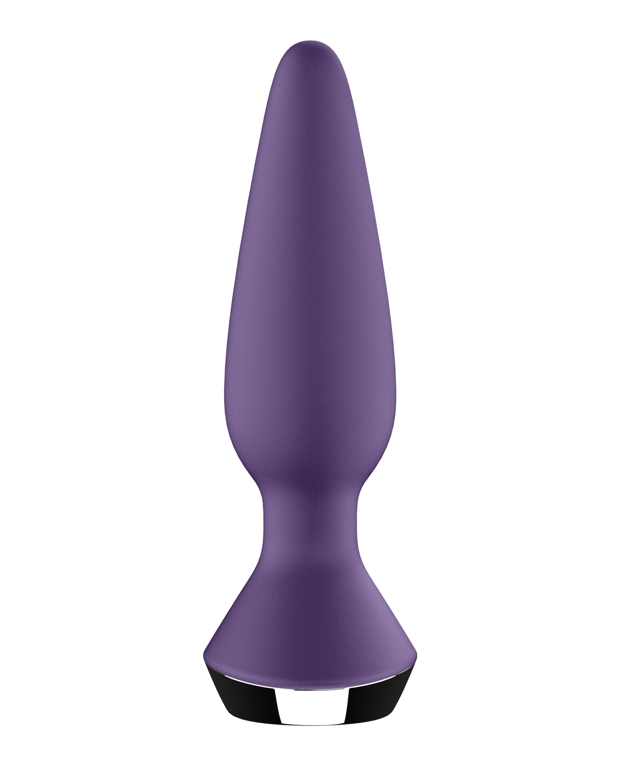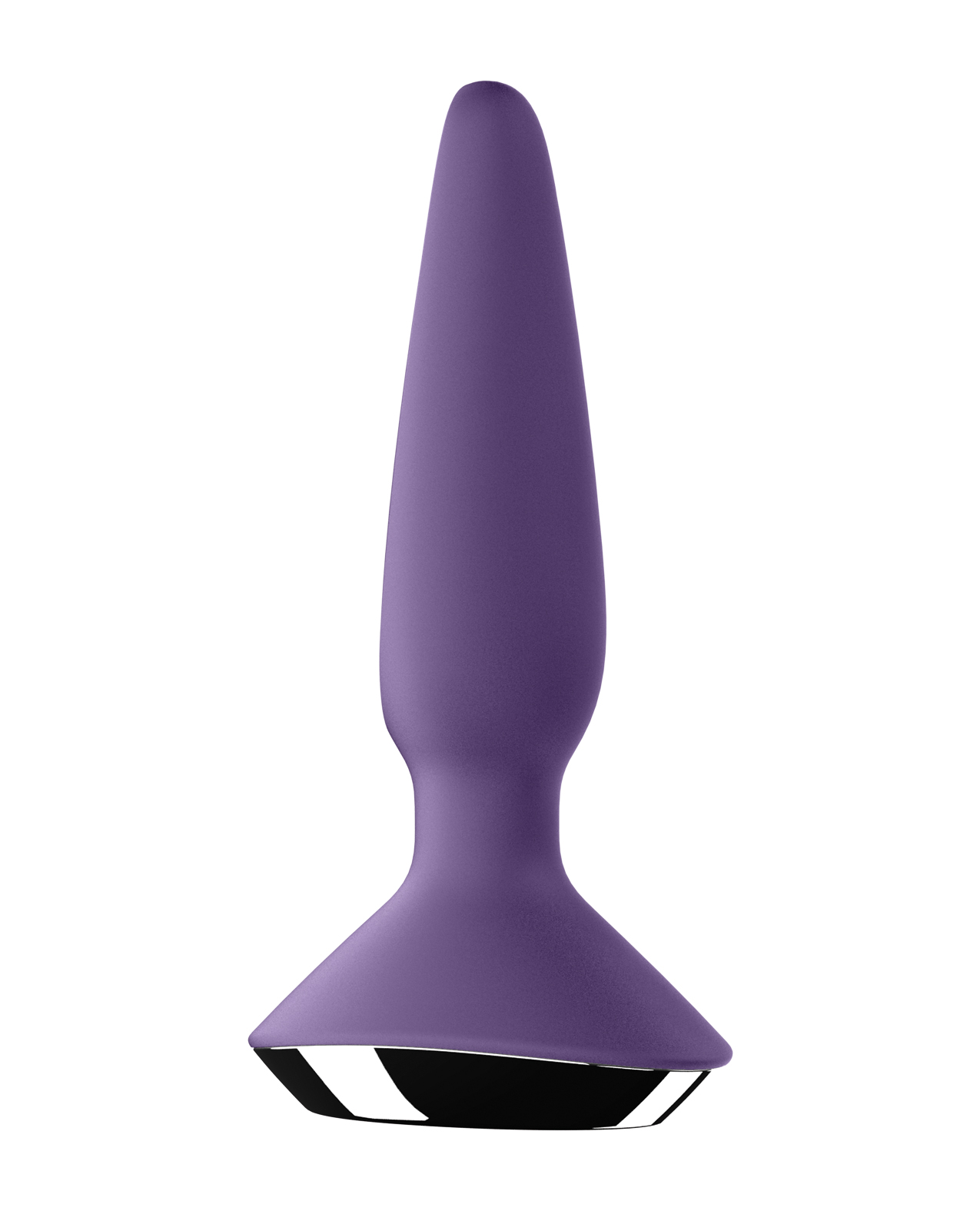 Plug-ilicious 1 from Satisfyer. The deep vibrations of the plug are driven by 2 motors that can be controlled intuitively via app. The Plug-ilicious 1 will also impress you with its soft silicone surface, conical shape and secure wide base. Compatible with the free Satisfyer App – Available on iOS and Android. App offers an unending range of programmes. Preset programmes can be edited. Can also be used without the app. The 2 motors can be controlled separately, allowing for numerous vibration combination options. Super-strong deep vibration. Suitable for all genders. Body-friendly silicone. Waterproof (IPX7). Whisper mode. USB rechargeable, magnetic USB charging cable included. Easy to clean. Dimensions: Length – 5.3 inches. Width – 1.6 inches. App-enabled.