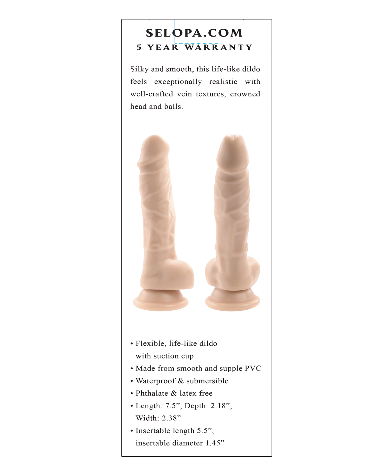 Silky and smooth, this life-like dildo feels exceptionally realistic with well-crafted vein textures, crowned head and balls.