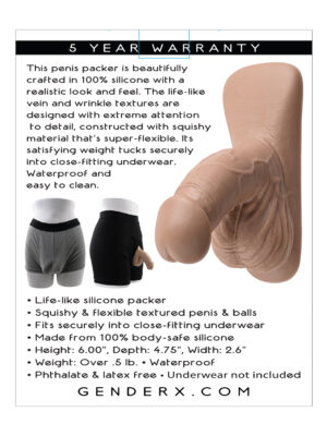Made with our hyper-realistic super soft, 100% Ultra Premium Silicone, the On the Go Packer is ideal for those seeking a quality packer with a natural feel and look. The shaft and testicles are velvety smooth to the touch, while the back has more grip so it stays put during extended wear. With its realistic detailing and flexible material this supple packer is designed to comfortably give you that casual bulge.