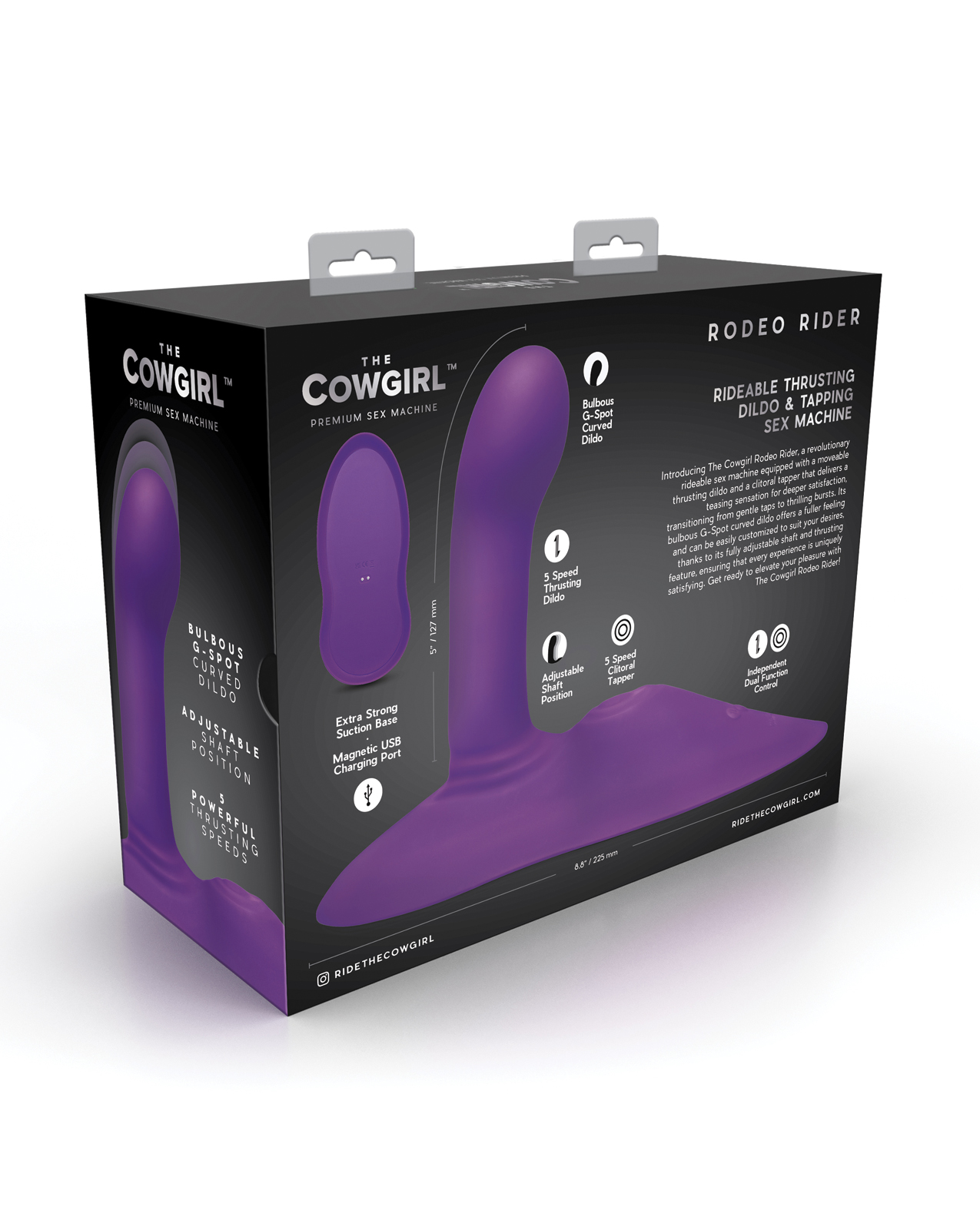 Introducing The Cowgirl Rodeo Rider, a revolutionary rideable sex machine equipped with a moveable thrusting dildo and a clitoral tapper that delivers a teasing sensation for deeper satisfaction, transitioning from gentle taps to thrilling bursts.