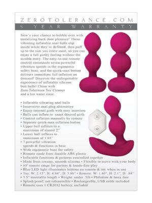 There’s nothing quite as erotic as the feeling of simultaneous prostate and penis stimulation, and this toy delivers that extraordinary combination with powerful vibrations and heat! The flexible silicone shaft is designed to arch toward your prostate with a heated tip that massages the P-spot in a tantalizing way, while the textured penis ring works its magic with its own vibrations. Use the remote control to enjoy hands-free play or partner play, even under water as the entire toy is fully submersible. Clean with ZT Toy Cleaner and a hot water rinse.