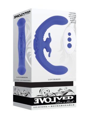 Evolved Lovebirds Curved Dual-Ended Rabbit Vibe w/Remote Control - Blue