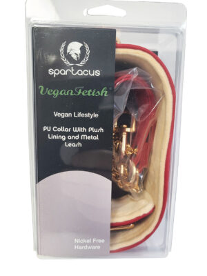 Spartacus Plush Lined PU Collar & Chained Leash - Red