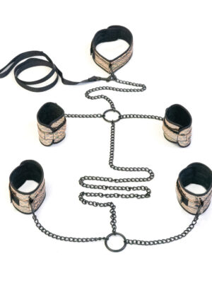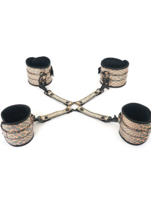 Spartacus Faux Leather Wrist & Ankle Restraints w/Hog Tie - Gold