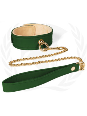 Spartacus Plush Lined PU Collar & Chained Leash - Green