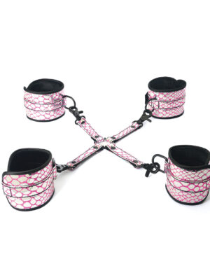 Spartacus Faux Leather Wrist & Ankle Restraints w/Hog Tie - Pink