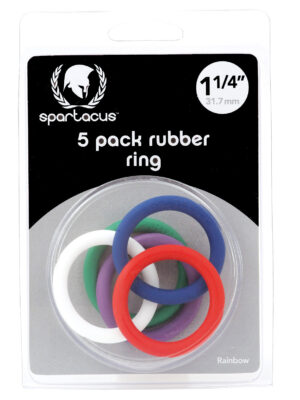 Spartacus 1.25" Rubber Cock Ring Set - Rainbow Pack of 5