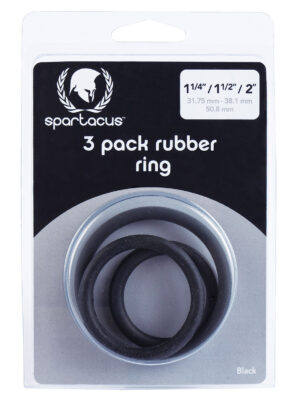 Spartacus Rubber Cock Ring Set - Black Pack of 3