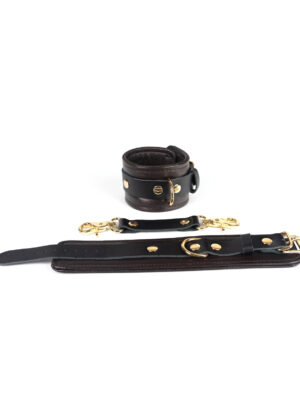 Spartacus Wrist Restraints - Brown Leather w/Gold Accent Hardware