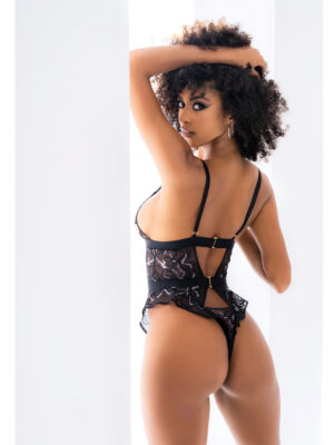 Embroidered Peek A Boo Bodysuit Black L/XL