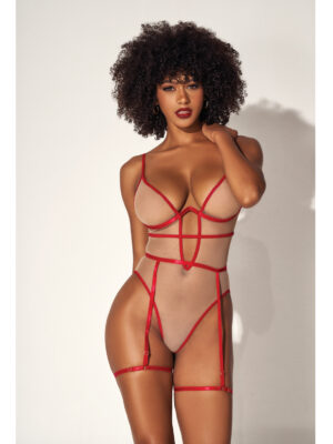 Underwire Bodysuit w/Cut Out Heart Back Nude/Red L/XL