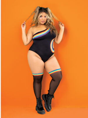 Pride One Shoulder Side Cut Out Bodysuit Black Prints 3X/4X