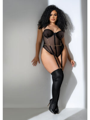 Mesh Bodysuit w/Gold Chain Detail Black 3X/4X