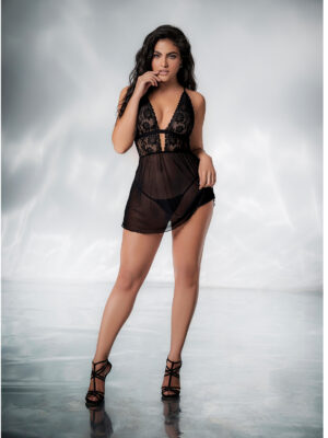 Sheer Lace Halter Top Babydoll w/G-String 2 pc Set - White 3X/4X