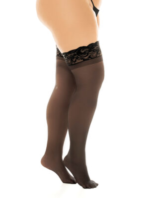 Sheer Thigh High w/Stay Up Silicone Lace Top Black QN