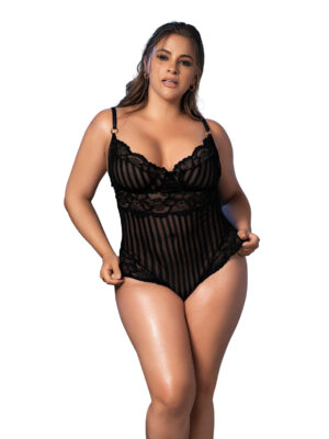 Shadow Stripe & Lace Teddy w/Hook & Eye Closure Black 2X/3X