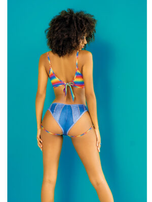 Rainbow Top & Strappy Micro Mini Shorts Chambray Prints S/M
